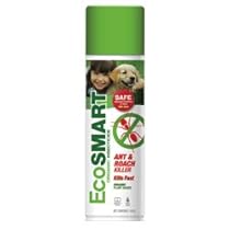 Introducing EcoSMART Ant & Roach Killer. Now there is a new organic fast-killing insecticide that is safe to use around children and pets. Unlike other insecticides it is made from plant oils and kills bugs naturally to better protect your family. It's safe. It's Effective. It's Smart. Naturally. EcoSMART Ant & Roach Killer formula kills and controls ants carpenter ants cockroaches crickets pill bugs silverfish spiders and other crawling insects on contact. Spray on insects to kill on contact. Also treat areas where insects are commonly found including around sinks and plumbing near appliances behind cabinets and around waste containers. When treating ants spray around the entry points and trails.