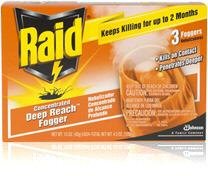 Raid Max concentrated DEEP REACH fogger allows you to automatically fill an average size room (up to 875 sq. ft.) with an insect killing fog while you're away. It penetrates into cracks crevices and carpet fibers. It won't leave a wet messy residue and